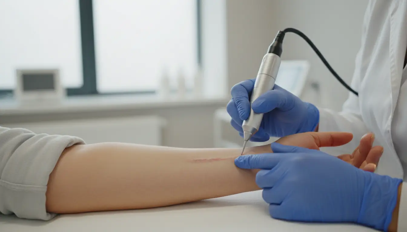 Tratamento de pele, clínica dermatológica, cuidado médico, tecnologia e resultados naturais.